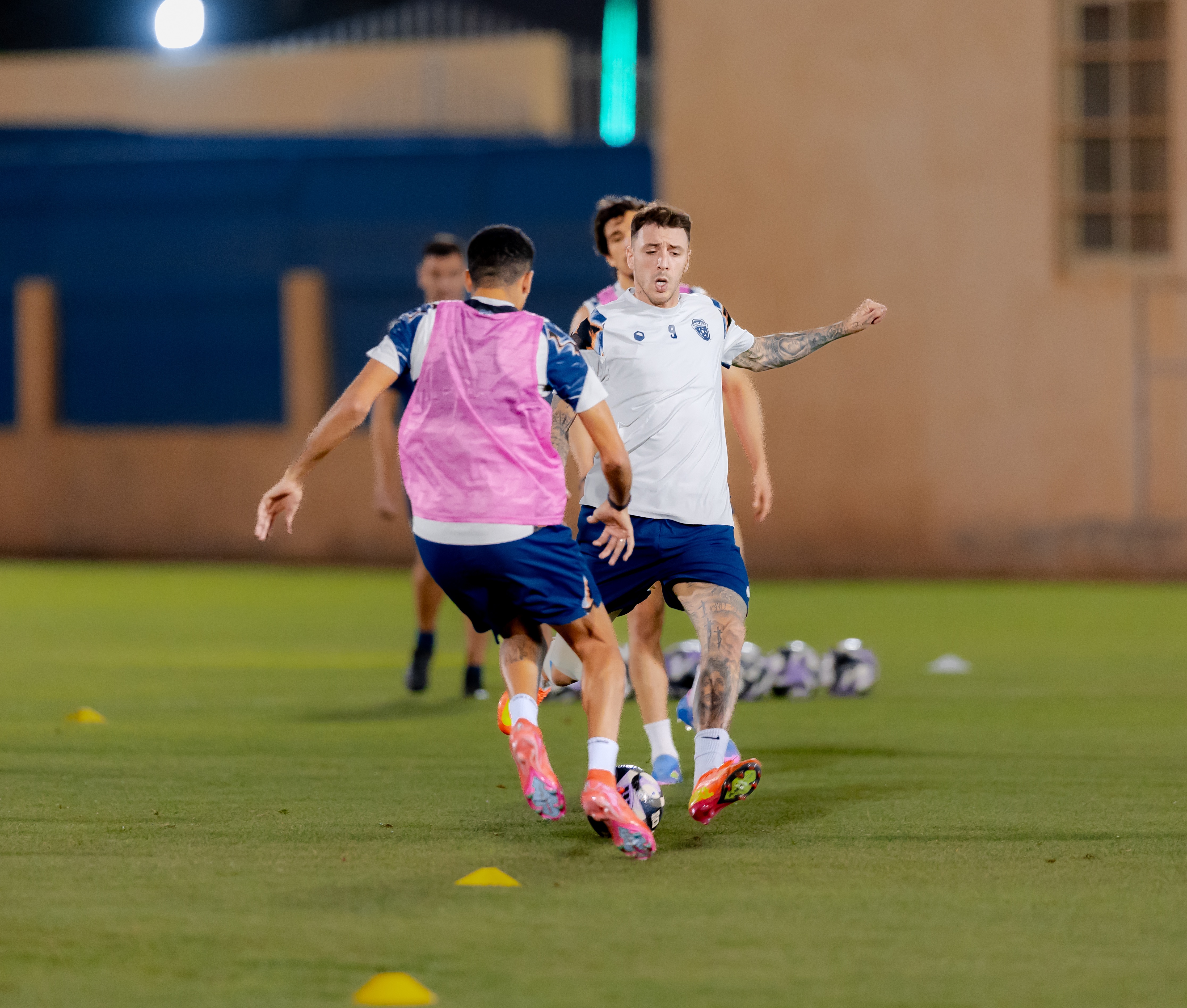 وأجرى الفريق حصته التدريبية على ملعب معالي الشيخ عبدالعزيز التويجري، بقيادة المدير الفني السيد بيدرو إيمانويل، حيث خضع اللاعبون في بداية الحصة لتمارين لياقية وعضلية مكثفة في الصالة الرياضية، تهدف إلى تعزيز الجاهزية البدنية، أعقبها محطات تكنيكية متنوعة ركز خلالها الجهاز الفني على الجوانب المهارية.